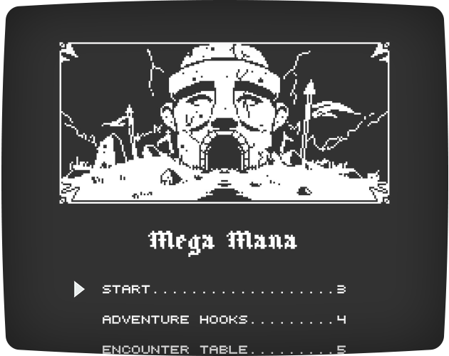 Deep within a buried temple lies an ancient construct, a towering golem-war engine waiting to awaken. Inspired by the spirit and structure of Mega Man 3, Mega Mana is a fast-paced, boss-room dungeon built for Shadowdark RPG.